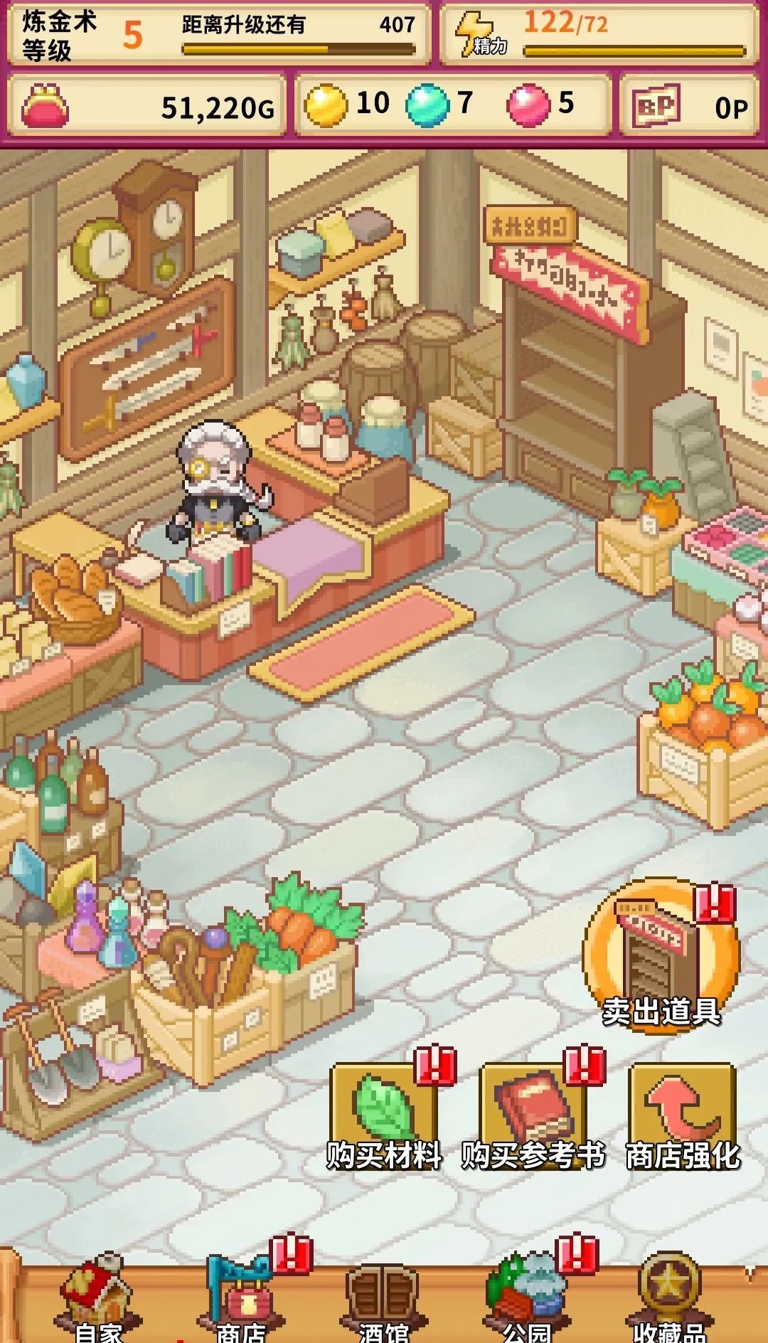 在“商店”界面,可以购买炼金所需的材料、学会炼金对应物品所需的参看书;也可以卖出道具来赚取财富。