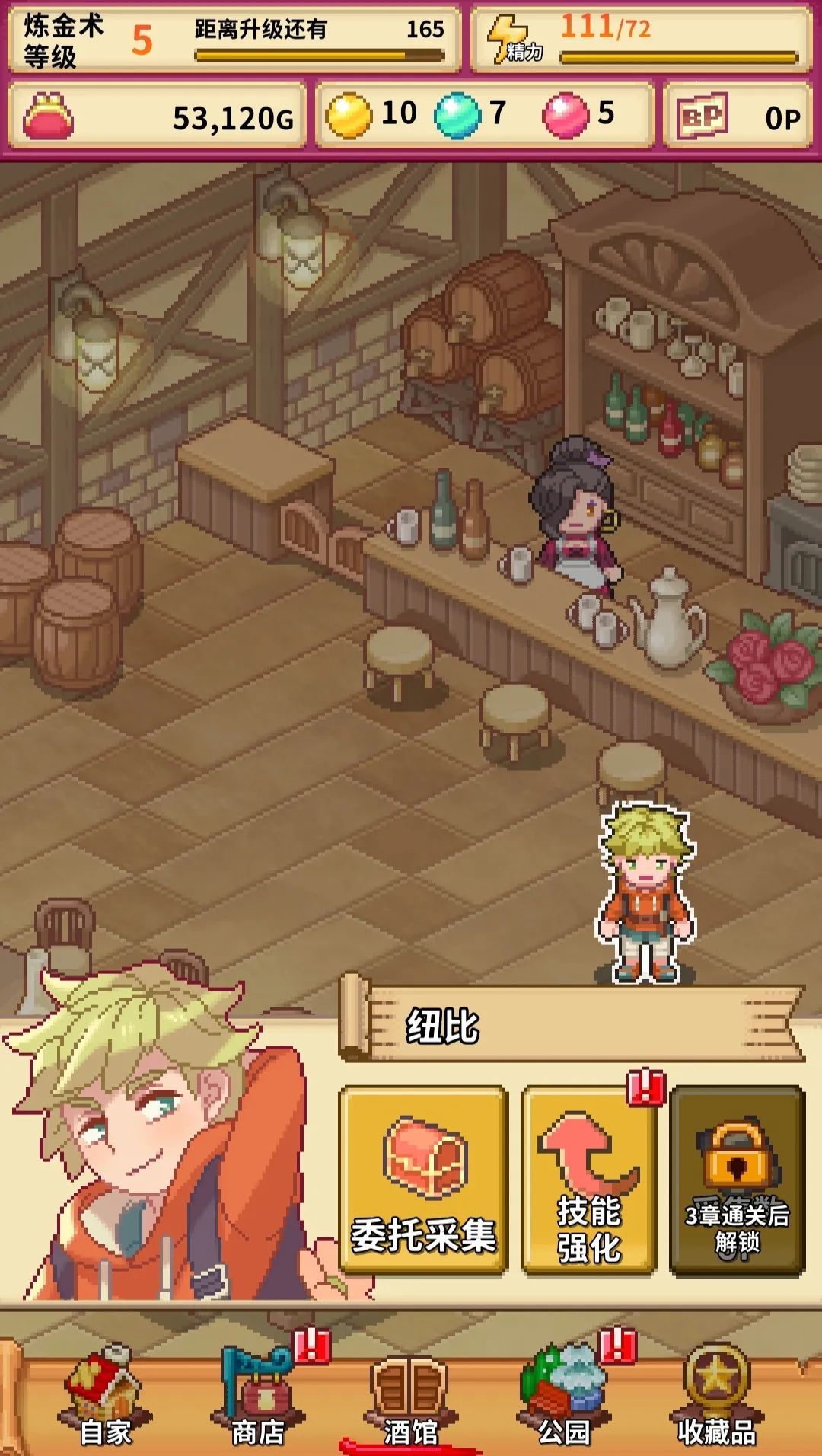 在酒馆里,我们可以找冒险者纽(niu)比(bi?),帮我们去森林里收集炼金所需要的材料。(悄咪咪:需要啥材料,尽量找纽比,不要去商店里买,因为他便宜!