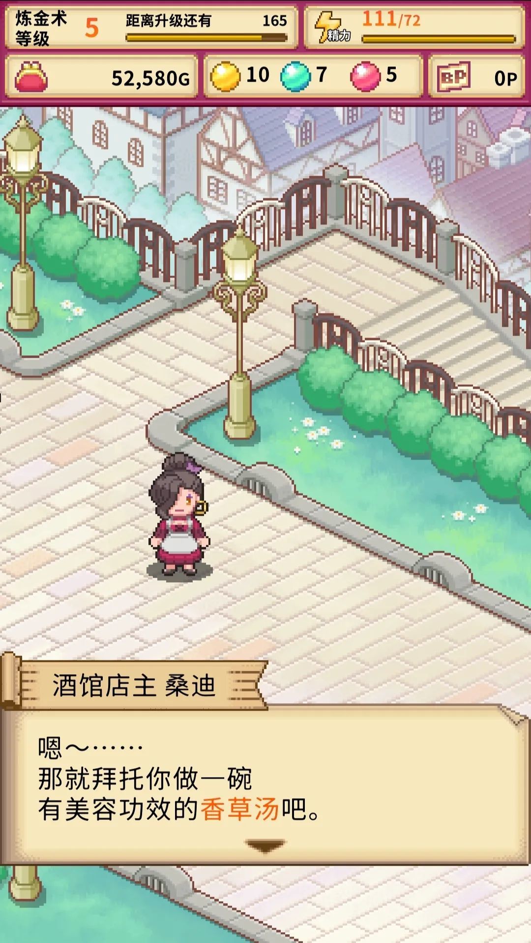 在这个冒险的途中,你不仅可以邂逅许许多多形形色色的的人——多达十几位个人特色鲜明的人物;你还可以不断精进自己的炼金能力成为一名厉害的炼金术师;也可以模拟经营商店去叫卖、出售自己炼金出来的物品