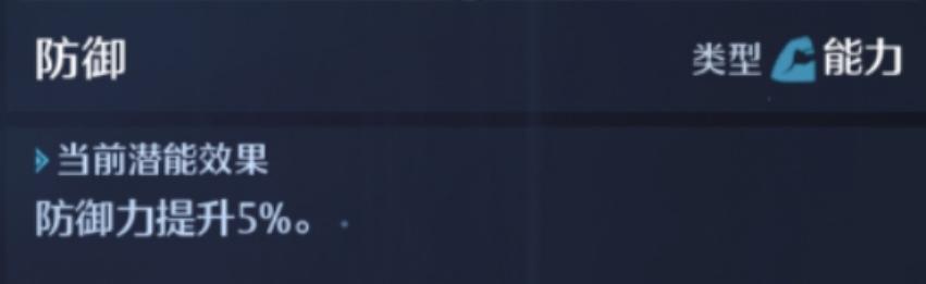 【防御】:顾名思义,提升防御力5%。推荐冒险家们换成奥莉雅的【卓越耐力】或菲雅的【卓越全能力】,尽量增加更多的血量和防御。