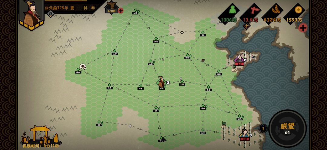 (6)离线的时候发展时间和年份时间都会继续,但随机事件读条、出征读条、名臣游荡是静止的