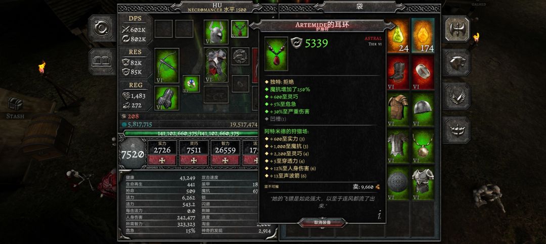 阿特米德的狩猎场套装,我唯一一个爆了2个红套装的装备,但是衣服强化完50了我就分解了,弓手专用6件套:+实力+魔抗+灵巧+人身伤害;技能:+穿透力+声波箭。