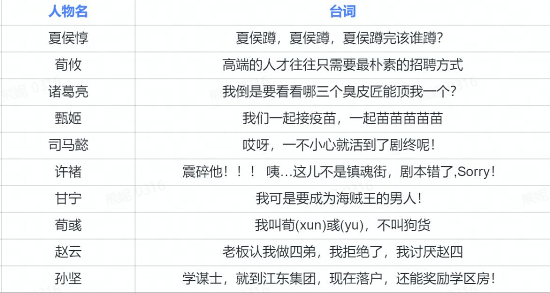 2、人物台词篇——寻找下方人物台词中含有哪些梗?