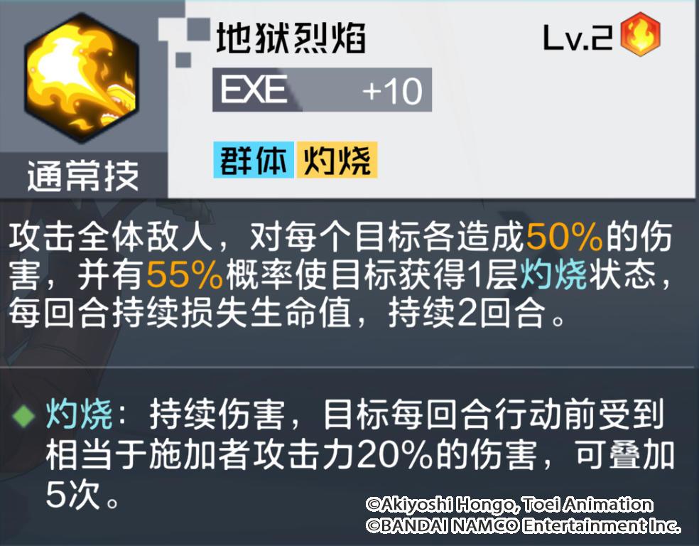 技能解析:能同时攻击所有敌方目标,并有一定概率造成灼烧。