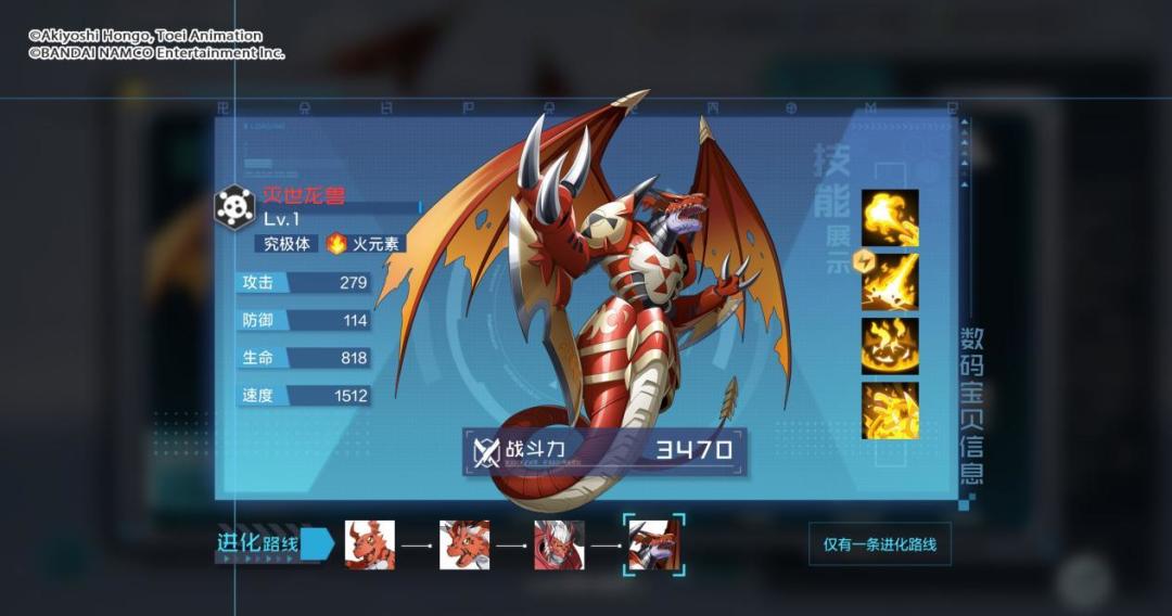 各位队长好呀~在此次内容更新中,游戏内新增进化路线,究极体灭世龙兽强势来袭。在战斗中,灭世龙兽不仅可对目标附加灼烧效果,还能增强己方全体的攻击和暴击属性,独具特色的技能效果,可以大幅度提升编队战力。