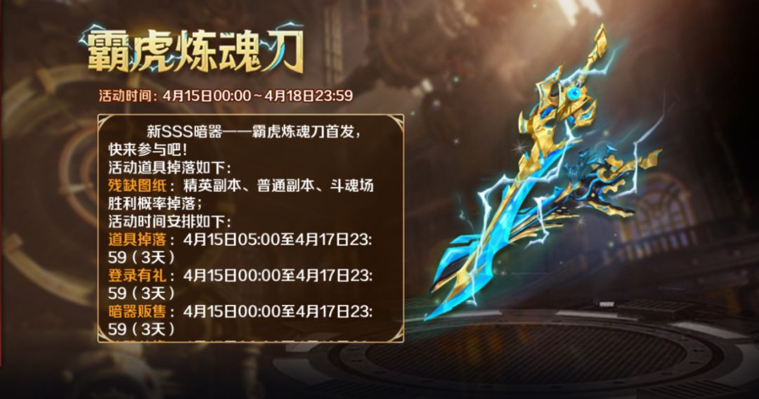 活动期间登录游戏即可获赠霸虎炼魂刀碎片、钻石等好礼!