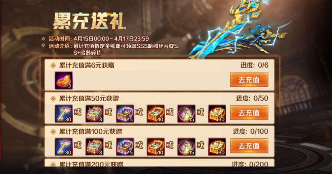 首发限定活动,SSS暗器霸虎炼魂刀升星达到指定星级即可获得大量资源回馈!
