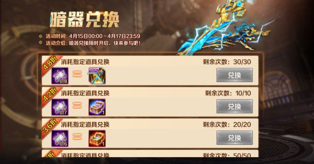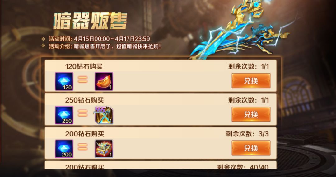 活动时间:4月15日-4月17日(兑换持续到18日)