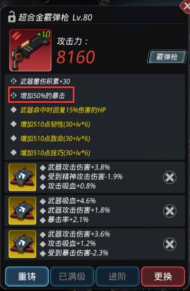 4、红装武器固定词条增加50%的暴击(武器攻击+职业技能攻击都享受该暴击加成)