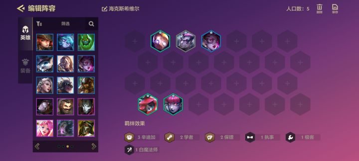 一、9人口大成,8人口小成,莫甘娜是前排挨打的,顺便凑个二白魔,但是由于几个大爹都是5费卡,9人口更好D。