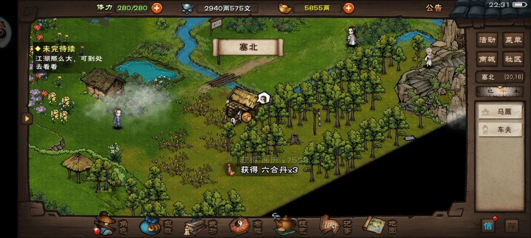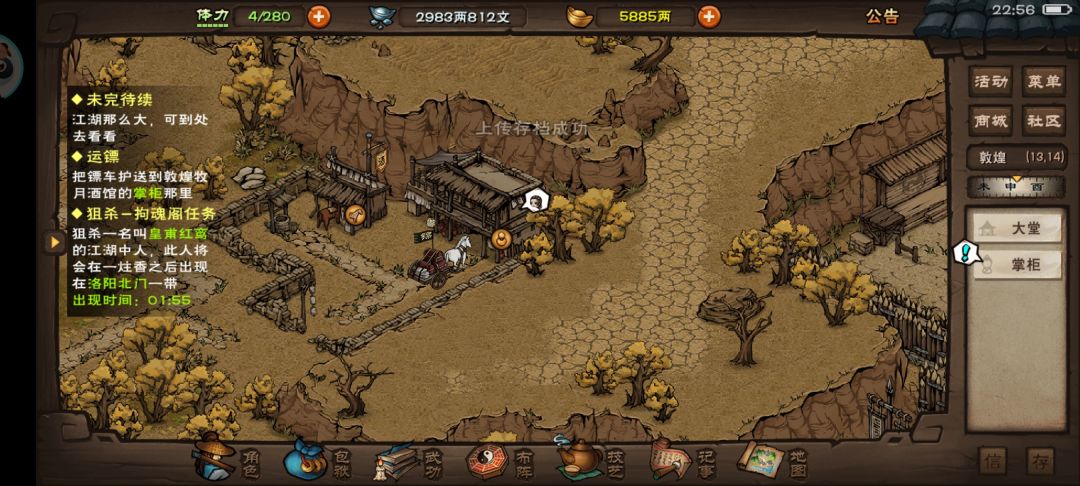 15、压完镖大概剩个两三分钟(这里我磨蹭了一下),这个时候可以回门派把门派任务给做了,在门派买个顺脉丹,这时候差不多到时间做第三个任务了,做完任务回树洞交差,洗个血池。