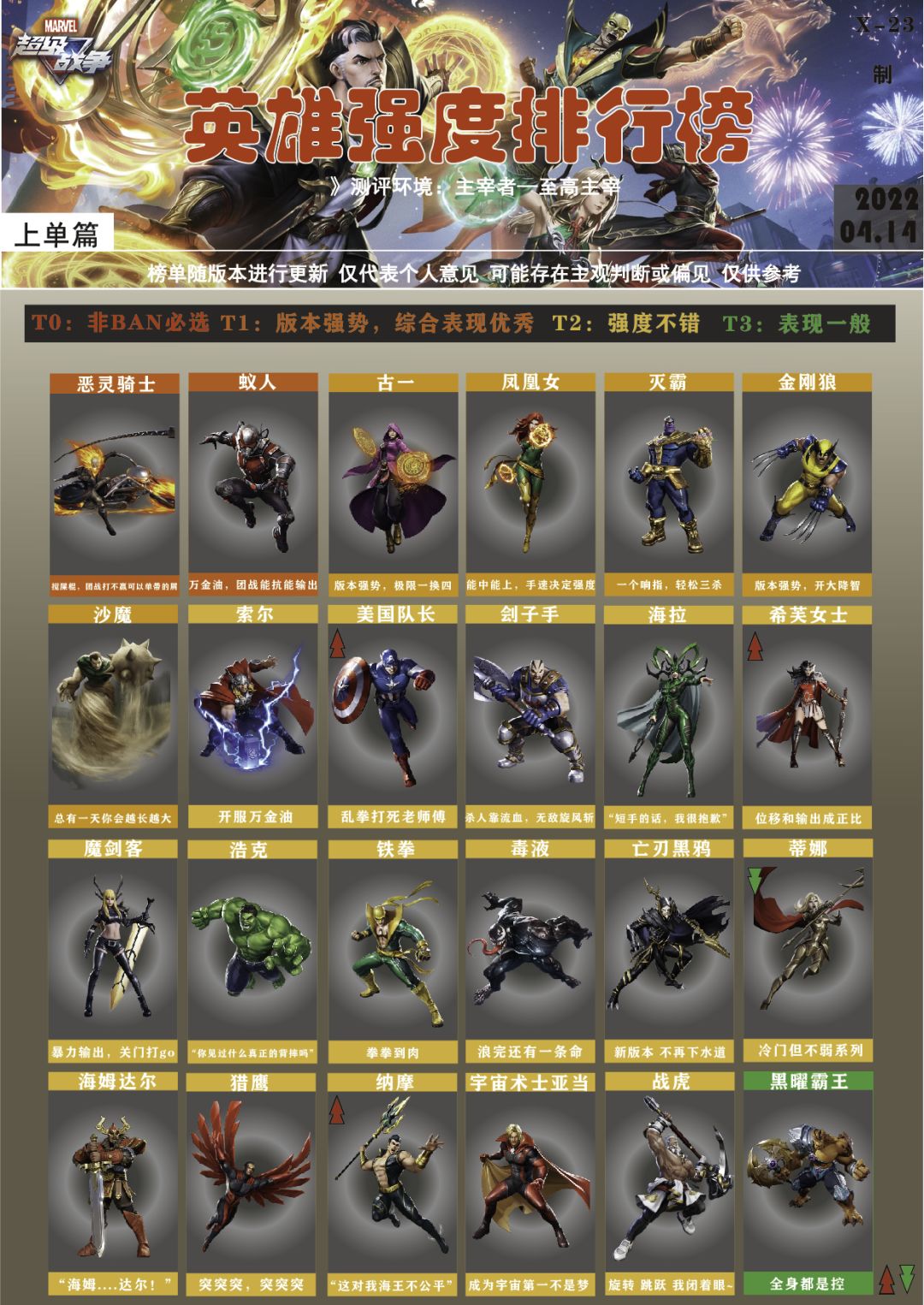4.14版本【英雄强度榜】第⑥期 2022.04.14