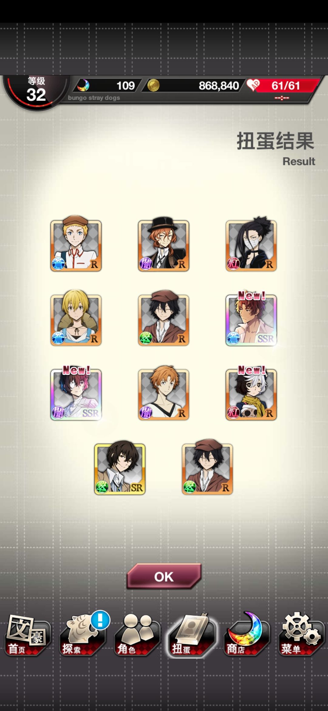 宰追着织田作来了(出了织田作的卡面本来想跳过了点了以后出了人间失格真是惊到我)
