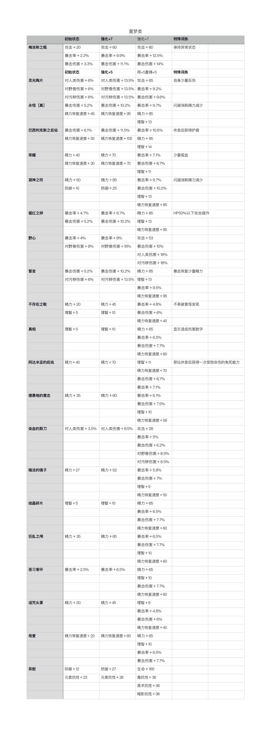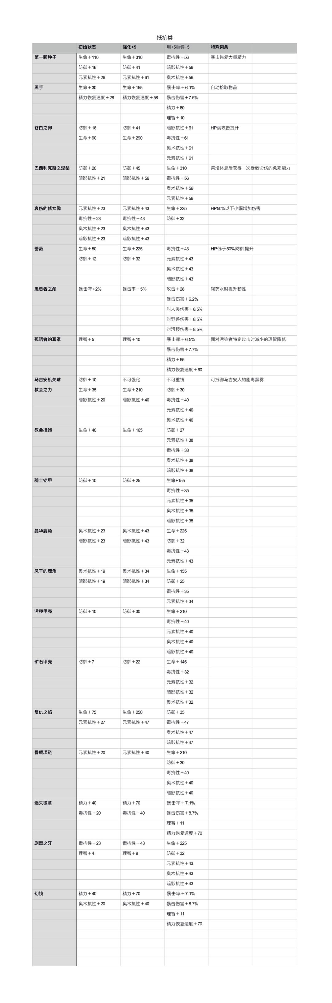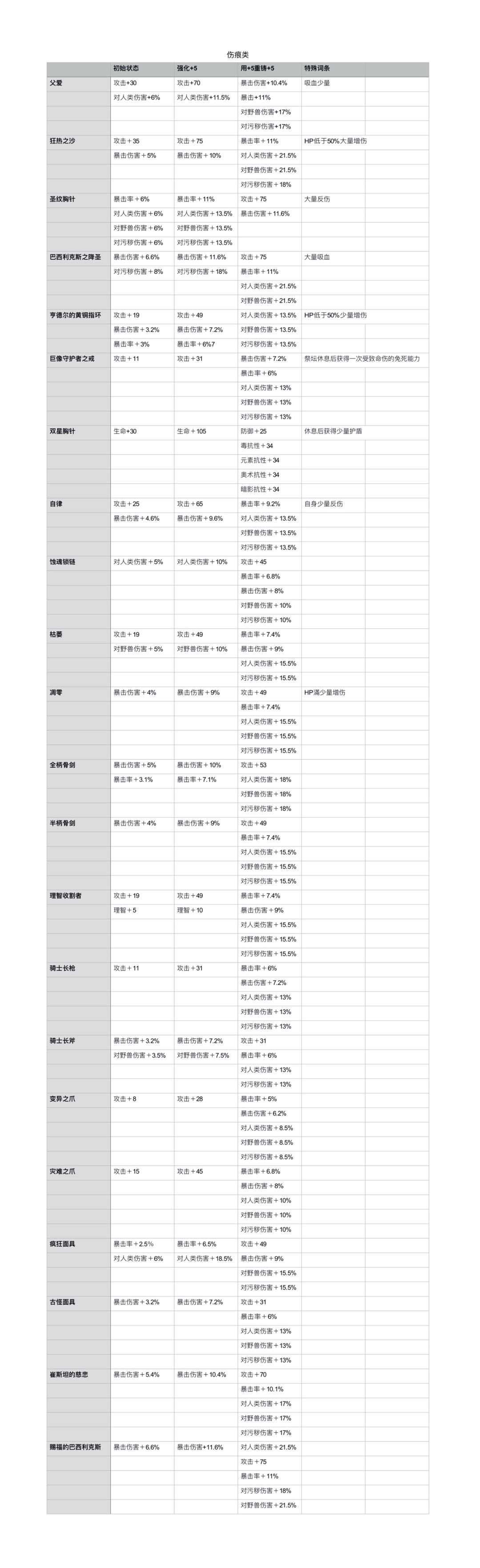 今天先更新一下伤痕类战利品的规律,剩下的有在做了有点乱没分好的大家先看一下这个