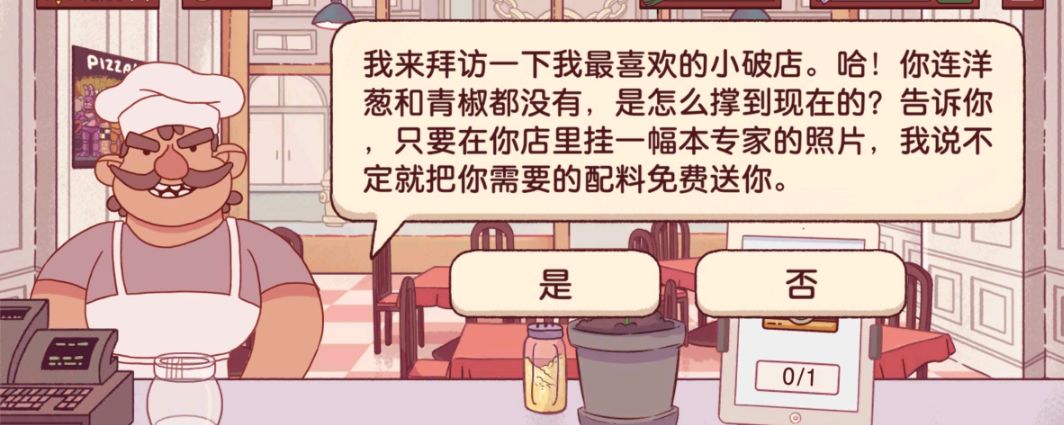 2 前期不着急买配料,可以先买加速烤箱和延长时间,到了20章以后大胡子会送你全部的配料,条件是挂一张他的海报!这个不可以换。介意的可以自己买材料。(但谁会拒绝大胡子傲娇鬼的海报呢)