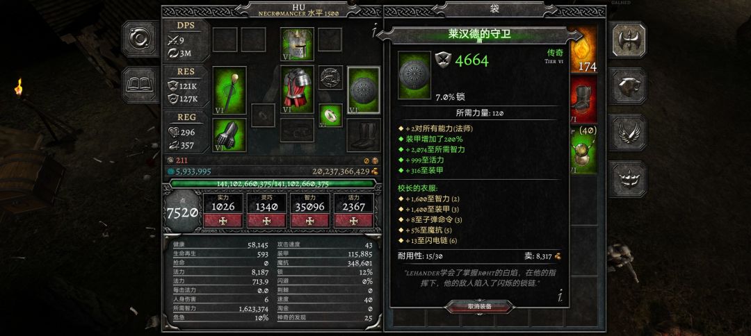 校长的衣服套装,法师专用6件套:+智力+装甲+魔抗;技能:+子弹命令+闪电链