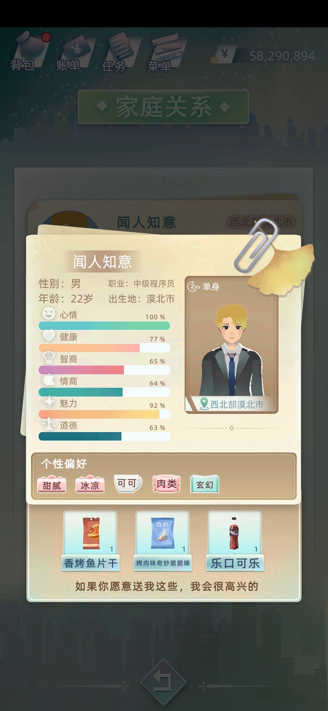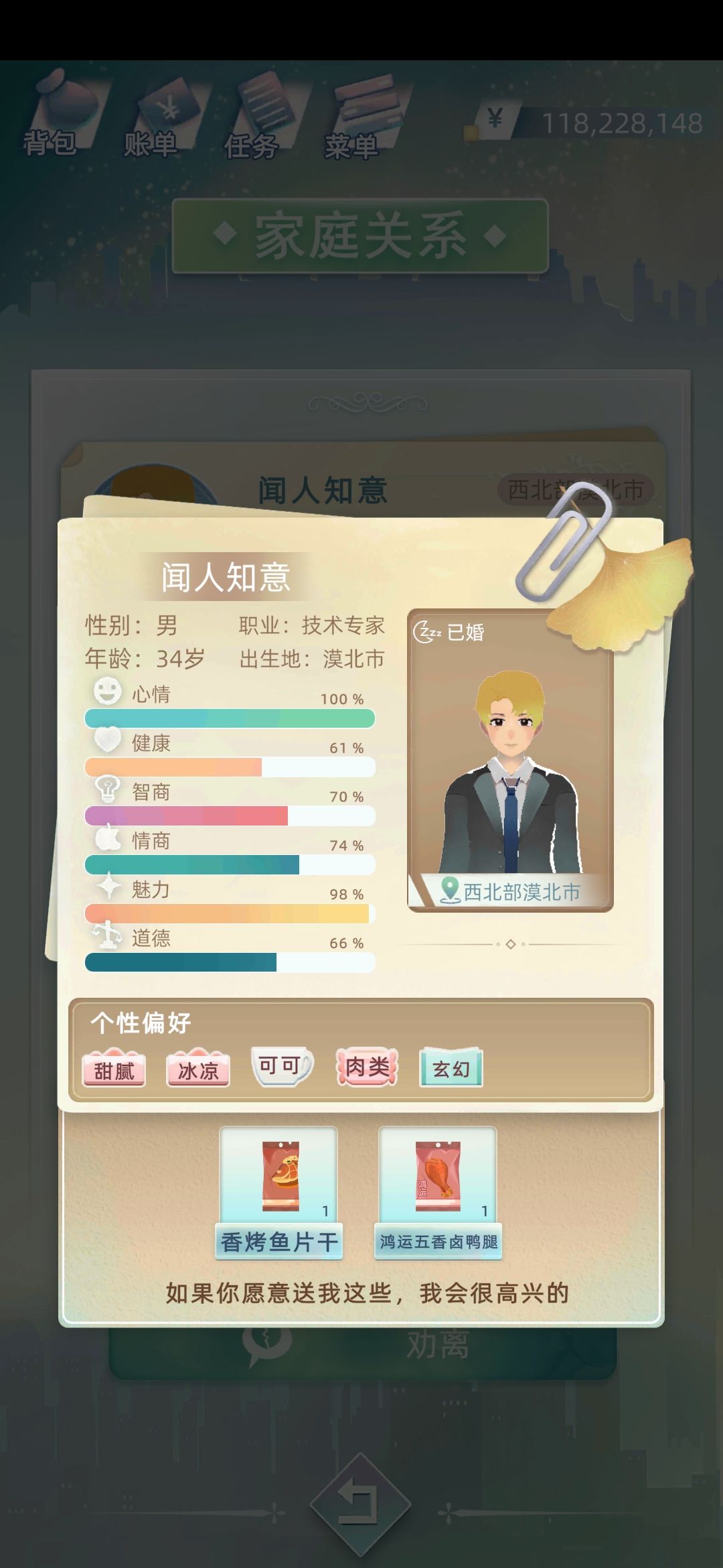 然后我带好大儿去吃大餐,培养里去掉了纤体加上了酒会,下面是第二年的效果,看见涨上来了就证明方向是对的,然后继续循环一下,一般增肥三年左右就可以了,可以观察一下魅力值。