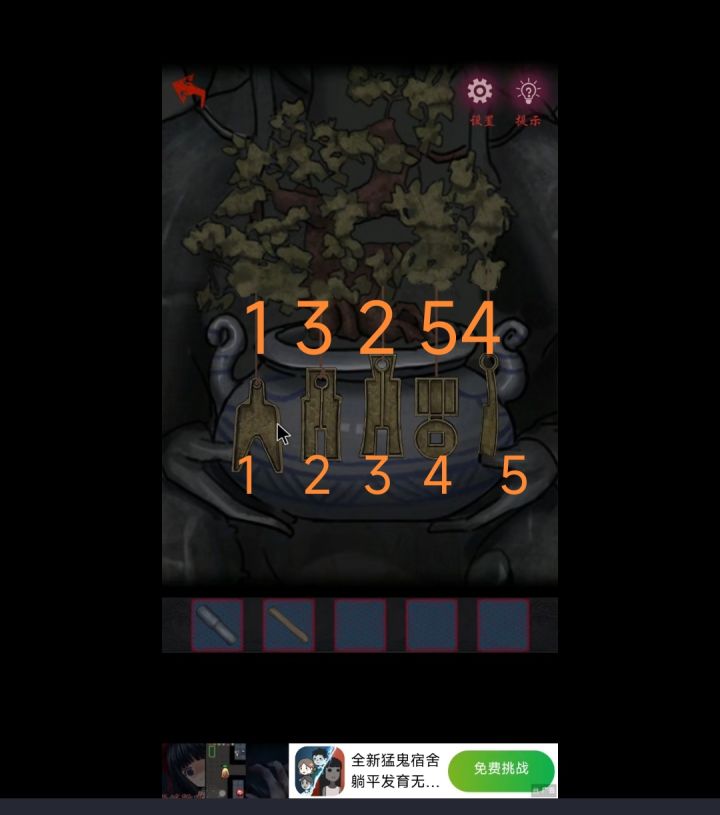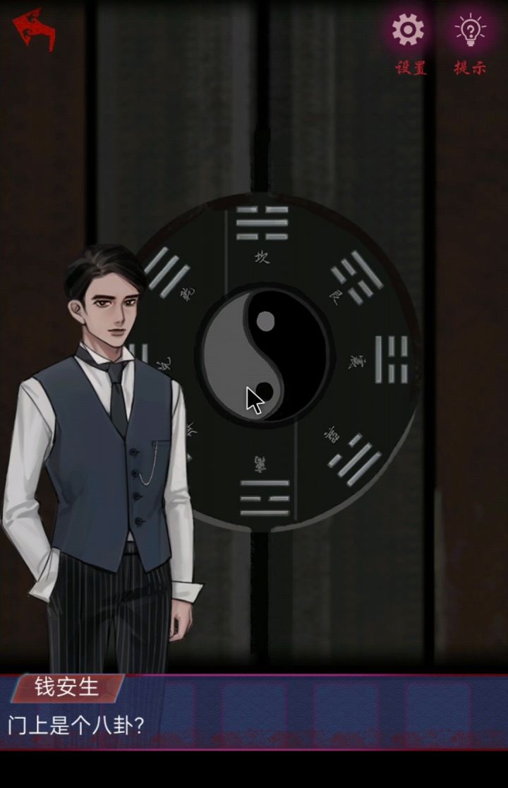 第一章图文攻略,跟随教程操作,走完进入序章,进入第一章点击进大门,观察两边对联,得到线索,再点乌龟背上八卦对应门上线索,先兑和离,再按乾和震,大门就解开,进入里面先点财神殿旁边的草地捡到捣药许,再退到大门外看两边灯笼,左边看玄之又玄,右边众妙之门 ,打上去财神殿就解开,进入财神殿左边石像手里盆栽,先把盆栽编个顺序12345,再按13254就可以解开盆栽,再按盆栽上面高矮顺序,去解右边石像手里的宝塔,再把玉牌放到石像下面随缘功德箱拿到里面的铜钱和发钗,再把三枚铜钱放到乌龟壳里面玩一个小游戏,第一个点乙亥,第二个点癸末,第三个点茂演,第四个点癸丑,看桌上签筒,退到大门,再次点击乌龟,按辛癸,已癸,壬甲,庚王,顺序点,拿到里面鲁班尺,用功德箱里面拿到发钗就可以去开药王殿门,吃饭,吃饭,我再发😛😚可以去看进入药王殿我的视频