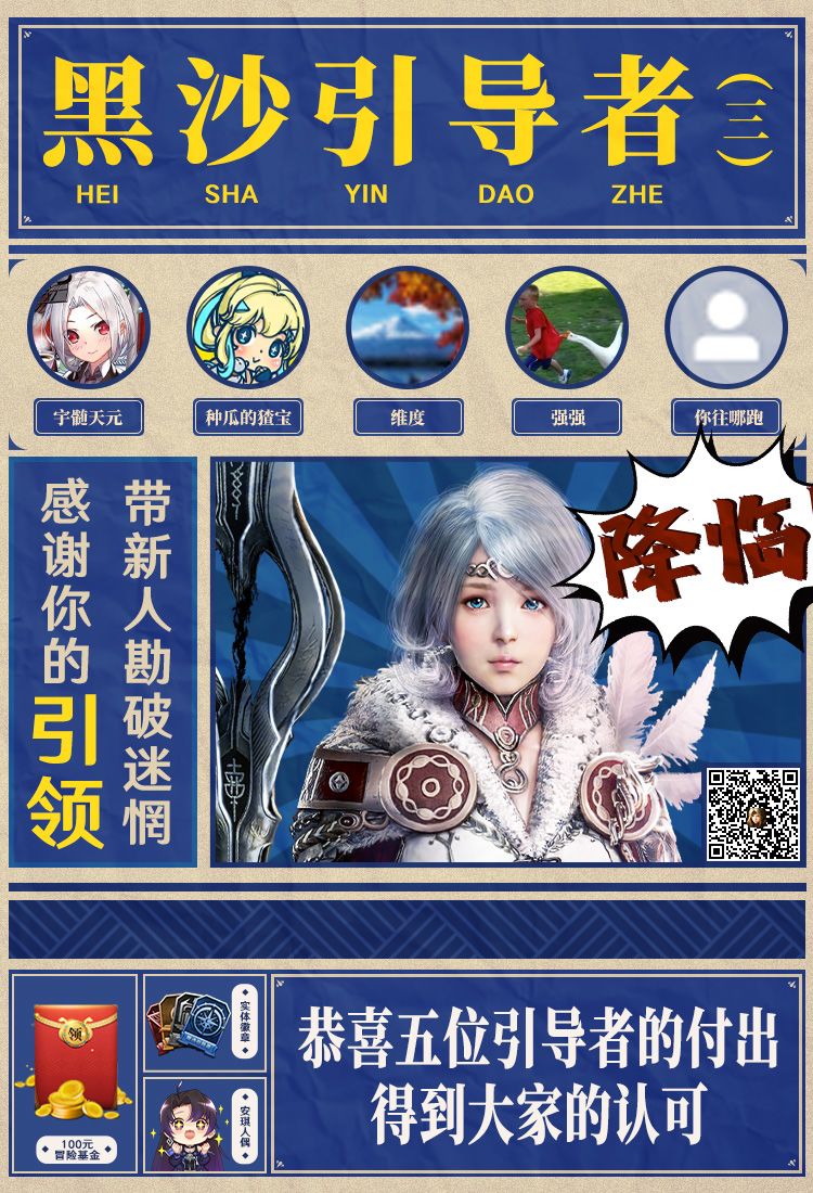 嗨,冒险家们,我是黑沙策划安琪!在3期【崛起计划】系列活动之中,黑沙引导者的招募是安琪最为关注的部分,因为这个职业意味着对社区的无私奉献,是社区薪火的象征!