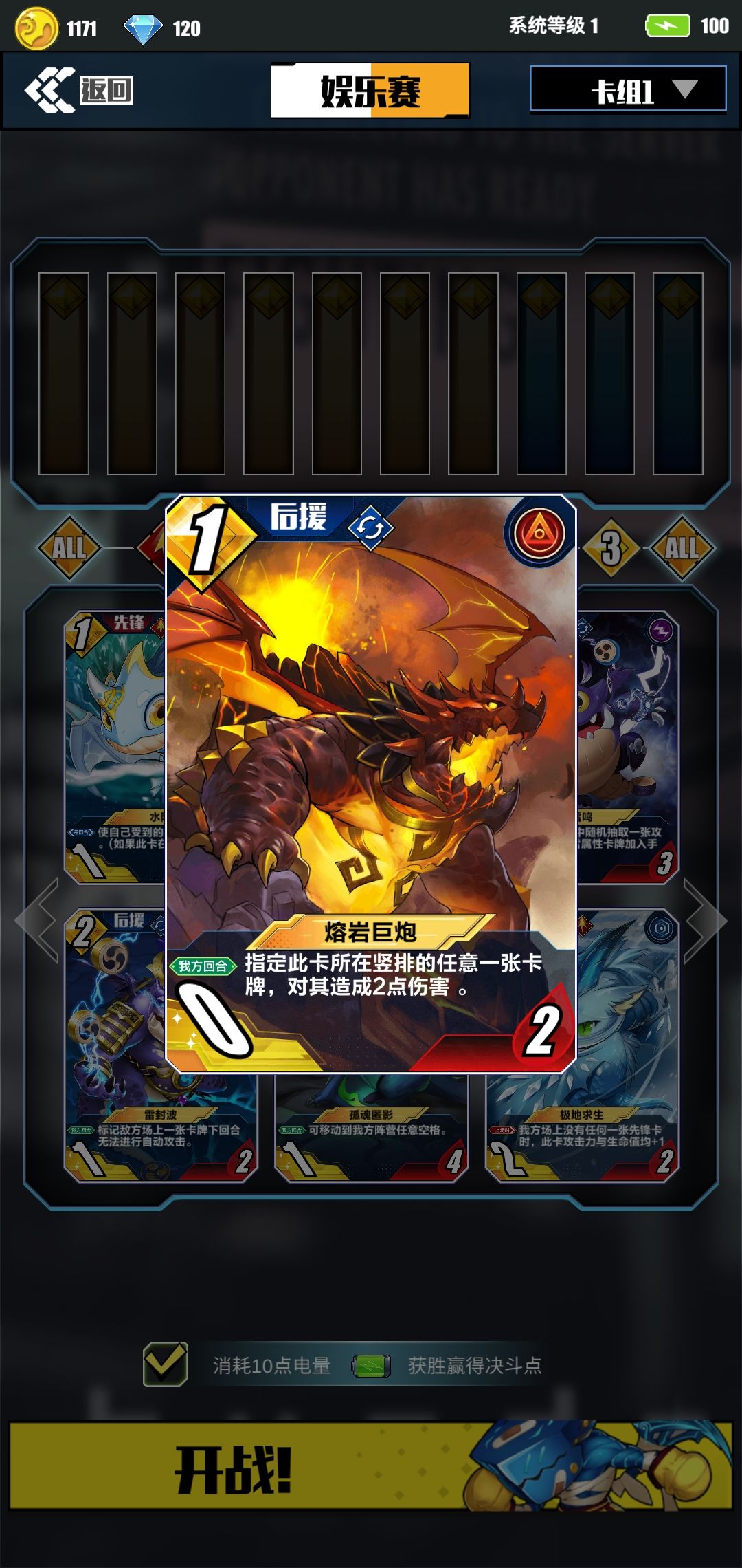 技能简介:每回合对“熔岩巨炮”所在竖排指定卡牌造成2点伤害。