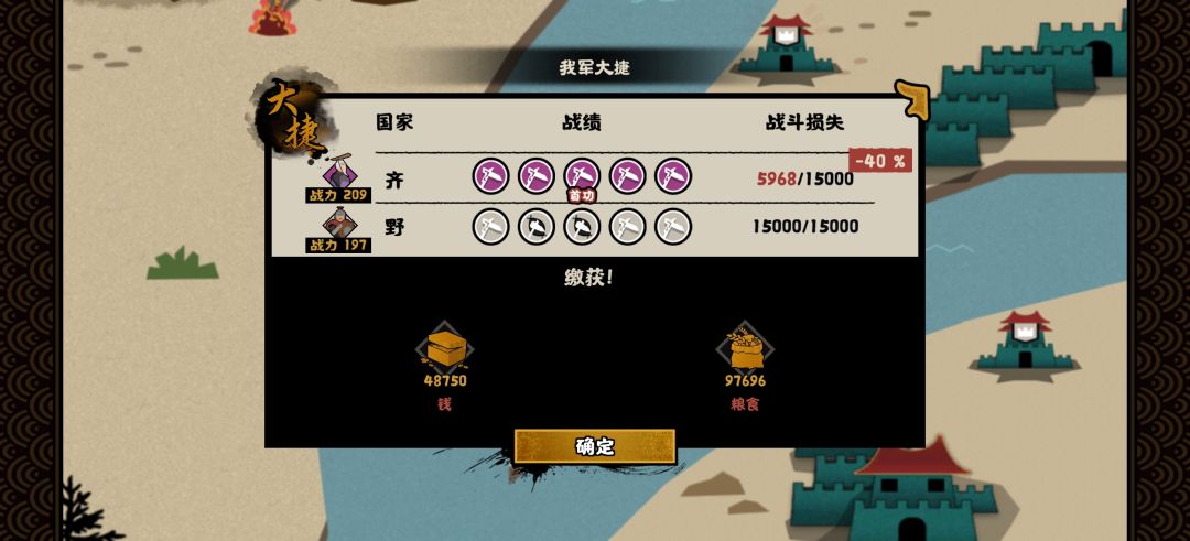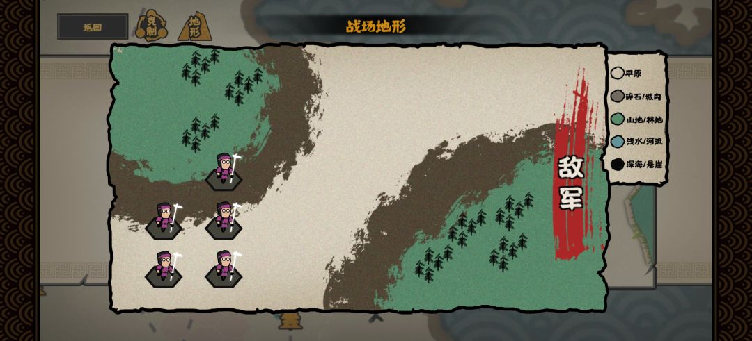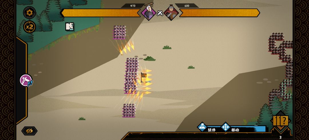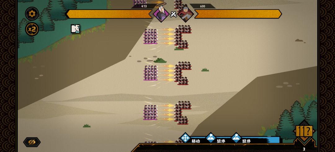 这里介绍一下打斗的思路,枪兵是一个非常吃地形也非常吃阵型的兵种,好的地形阵型与随意铺开的结果有巨大差异。