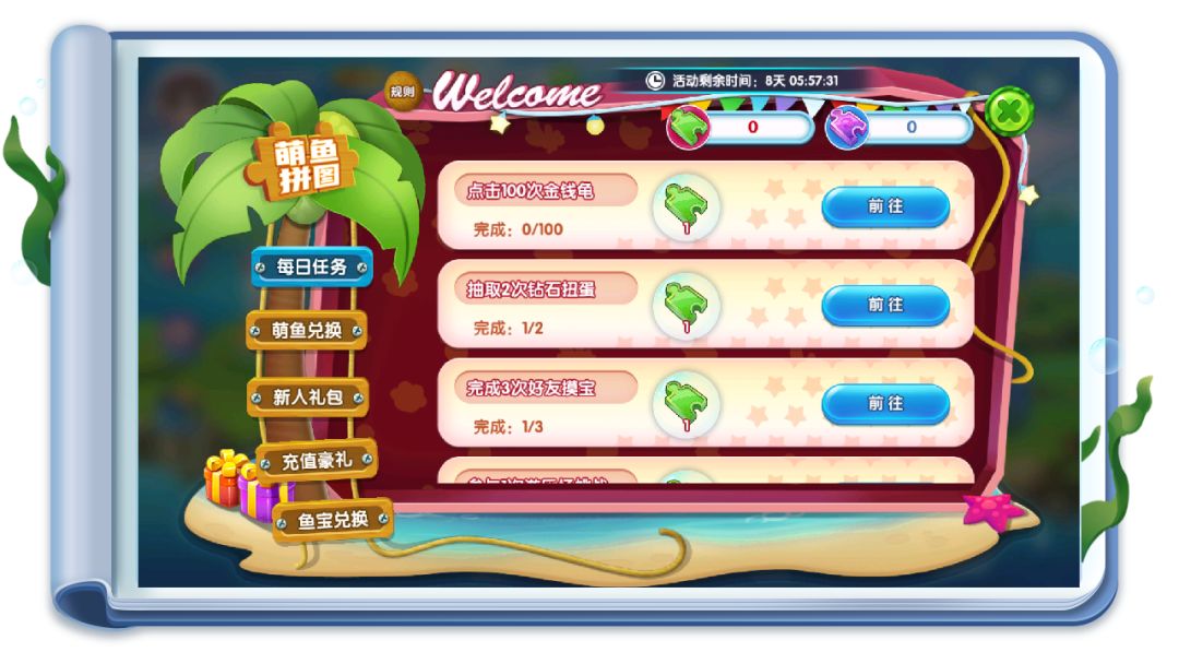 活动规则也很简单~馆长完成相应的萌鱼拼图任务即会获得相应奖励。