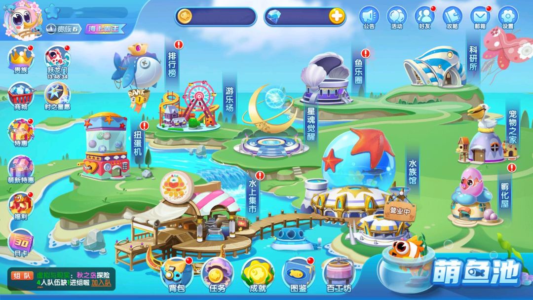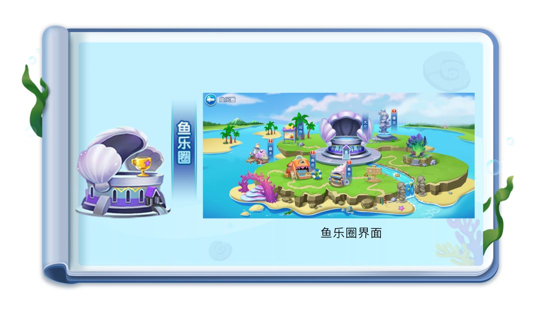 ① 鱼乐圈里可以跟小伙伴们一起做建设、打副本,可以参加集会募集或赠送鱼宝;