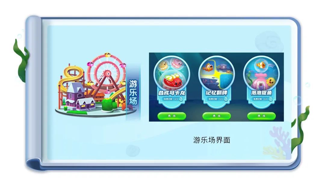 ① 在养鱼的闲暇时可以前往游乐场,挑战项目获得的鱼币可以兑换超多奖励,更有专属头像框。