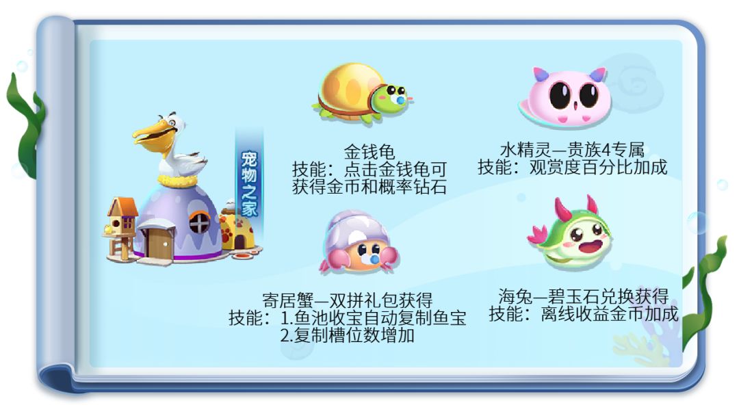 ① 达到皇冠期萌鱼每种可以放一条进水族馆,这也是对馆长们来说很重要的一个建筑;