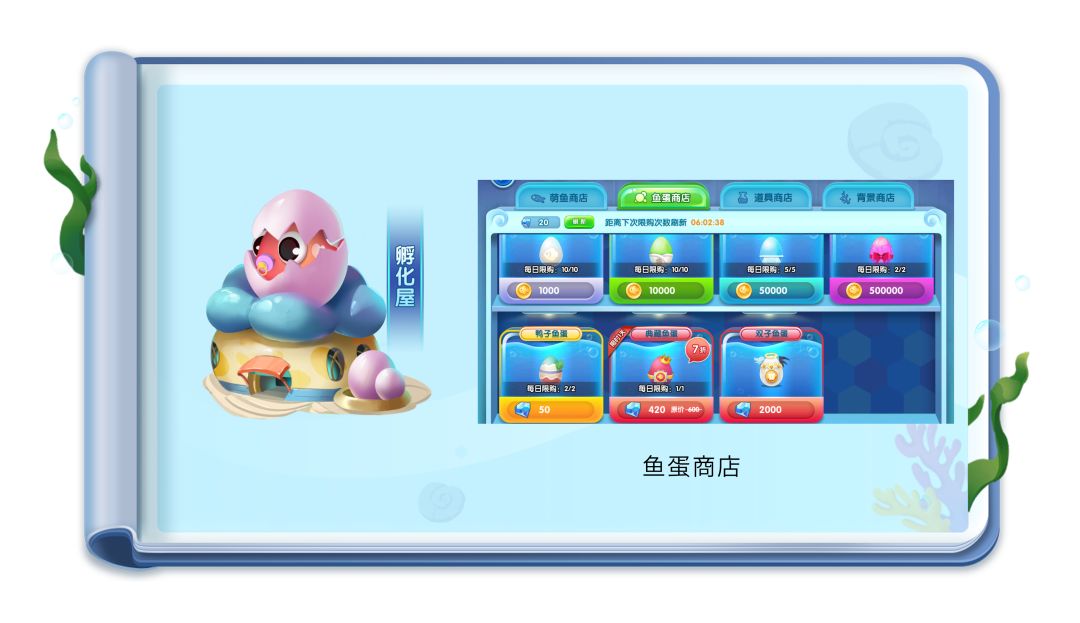 ① 馆长们可以前往鱼缸右上角-商店-鱼蛋商店购买鱼蛋进行孵化;