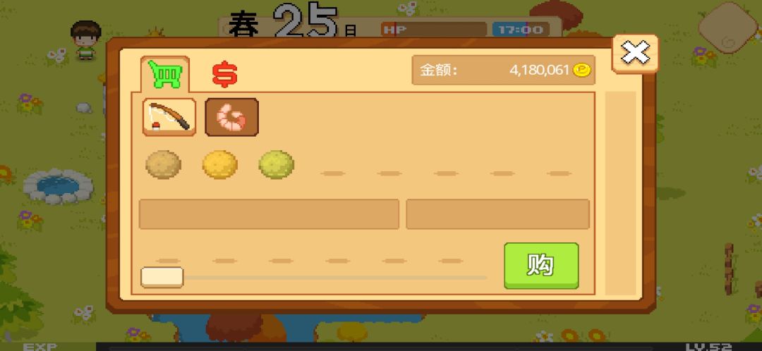 这个鱼饲料呢有三个等级,最贵的可以增加垂钓稀有鱼的几率(鳗鱼,金枪鱼),平时买第一个最便宜就行了,几率比较低而已