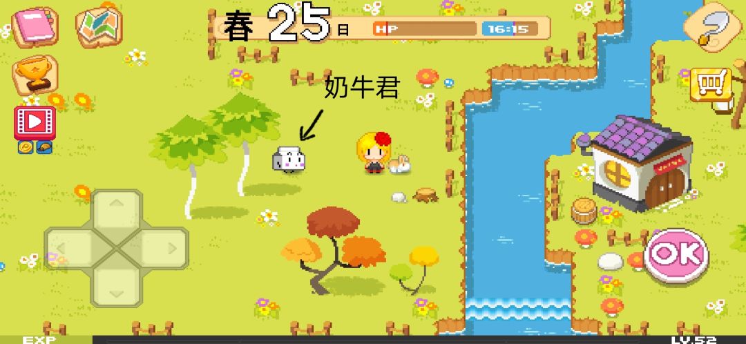 这个奶牛君出现了就可以买牛啦,买牛之前先买干草哦,而且要记得买多一点,要没了得赶紧补充,因为没有干草的话牛会跑,没得抓回来的,只能重新买,别问我为什么知道😭
