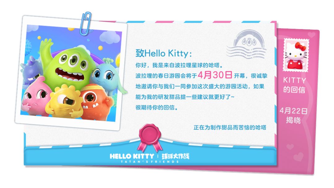 春日游园会正在筹备阶段,还有全新联动玩法、全新联动皮肤、Hello Kitty 正版周边等你哦。希望球宝们都能和Hello Kitty成为好朋友,4月30日一起在春日游园会里快乐游玩!
