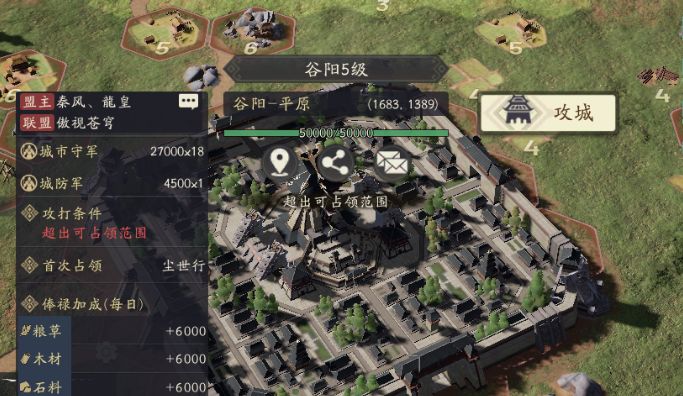 在14日、15日时,【谷阳】城外,虽然【尘世行】仍旧在积极抵抗,但连续的战败影响士气太大,加上大多为新募之兵,【尘世行】逐渐开始显露溃势,【傲视苍穹】勇往无前,开始拔下大量徐州的城池。