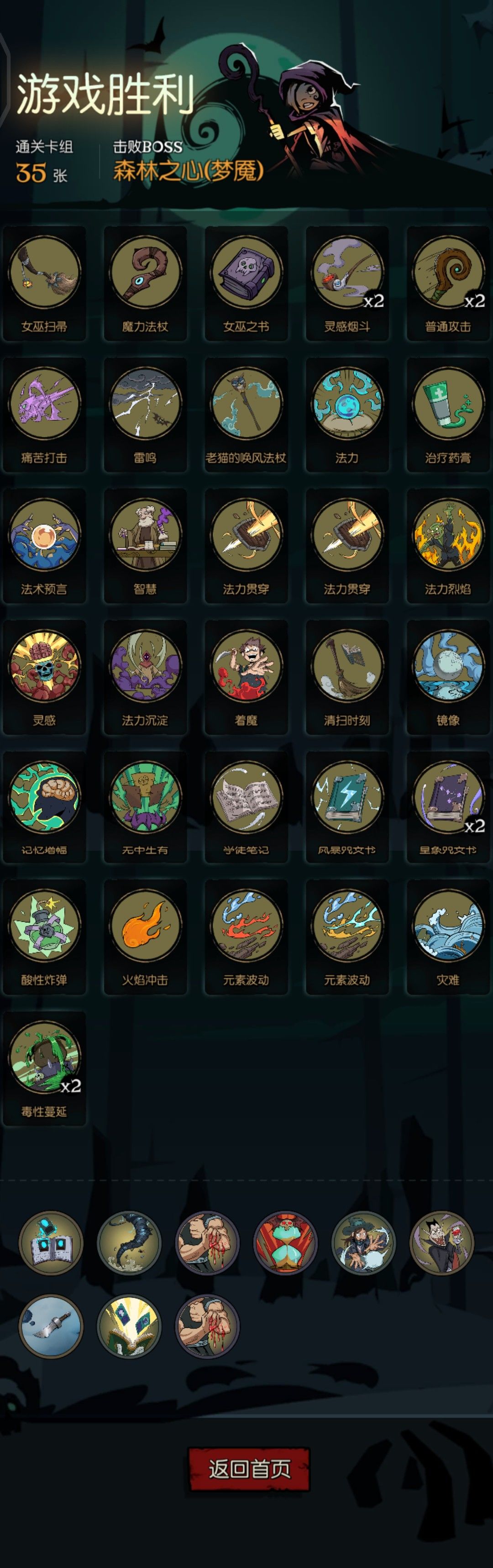 4.装备牌要选能不停出临时牌的!比如灵感烟斗(使用5张咒术牌后出1张临时咒术牌)、女巫之书(回合开始时出一张咒术牌)还有一个绿色的牌我这局没抽到,作用是每使用一张咒术牌,抽一张牌,最多三张,也能增加牌组利用率。