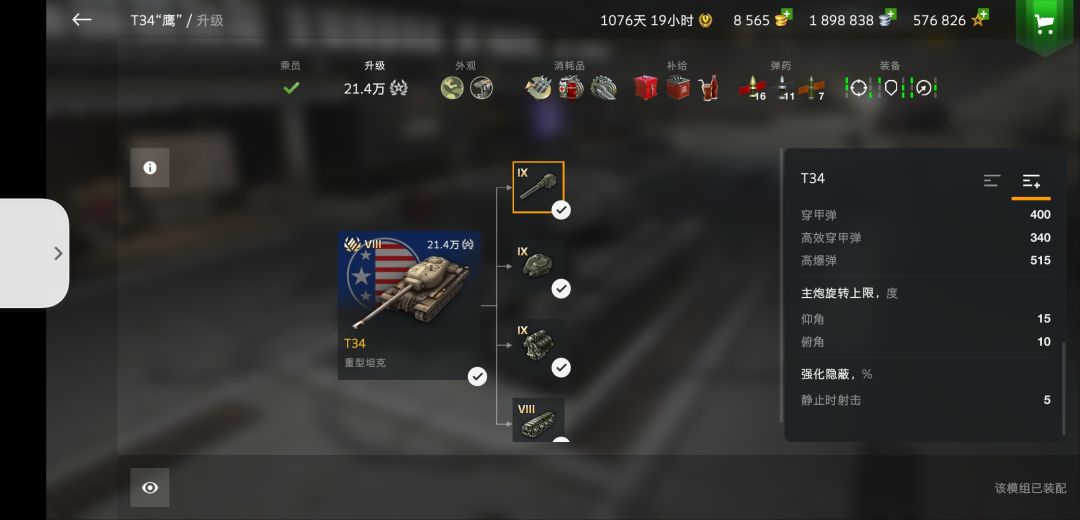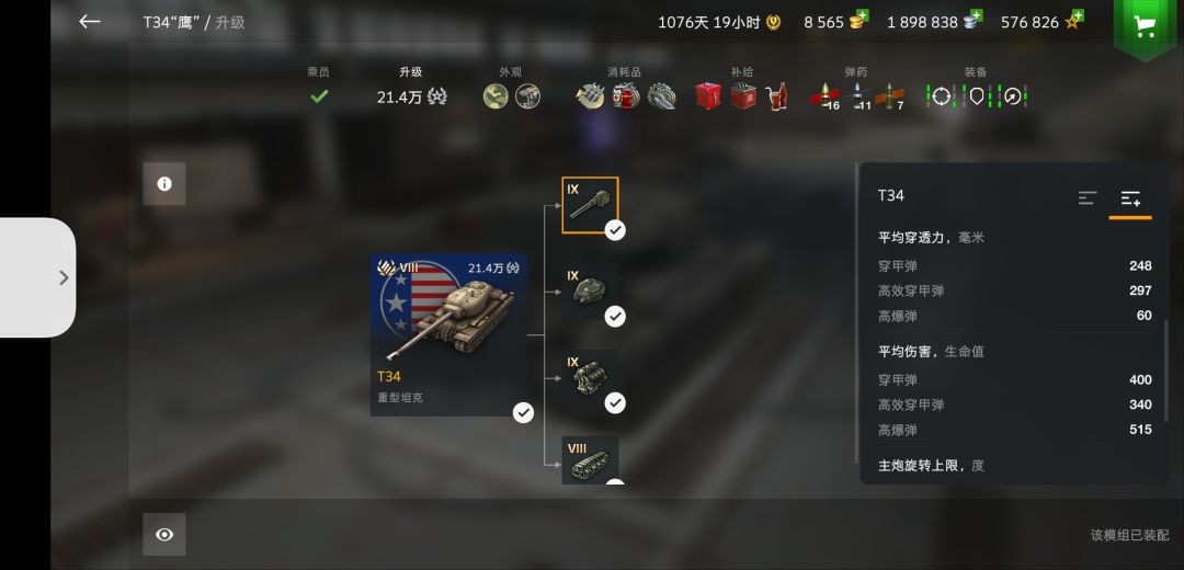 这是T34流氓的地方之一———八级重坦穿深天花板,而且从游戏开服到现在无人能够撼动。