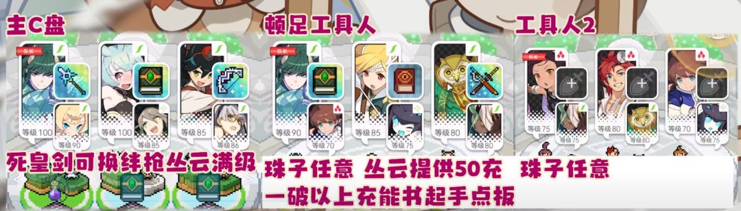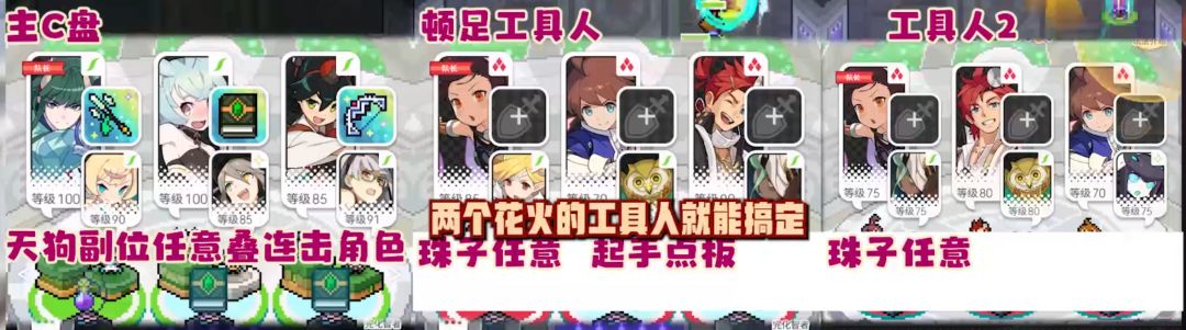 工具人配置要求很低 两个花火的工具人就能搞定 其中顿足的工具人最好点板