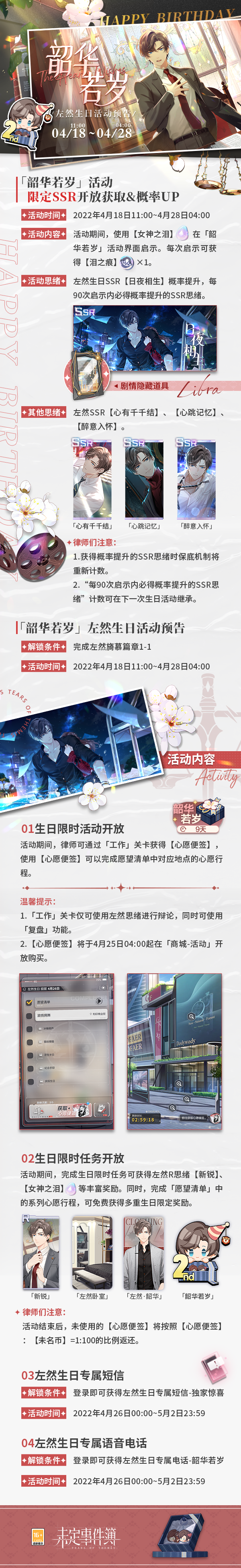 -活动思绪:左然生日SSR【日夜相生】概率提升,每90次启示内必得概率提升的SSR思绪