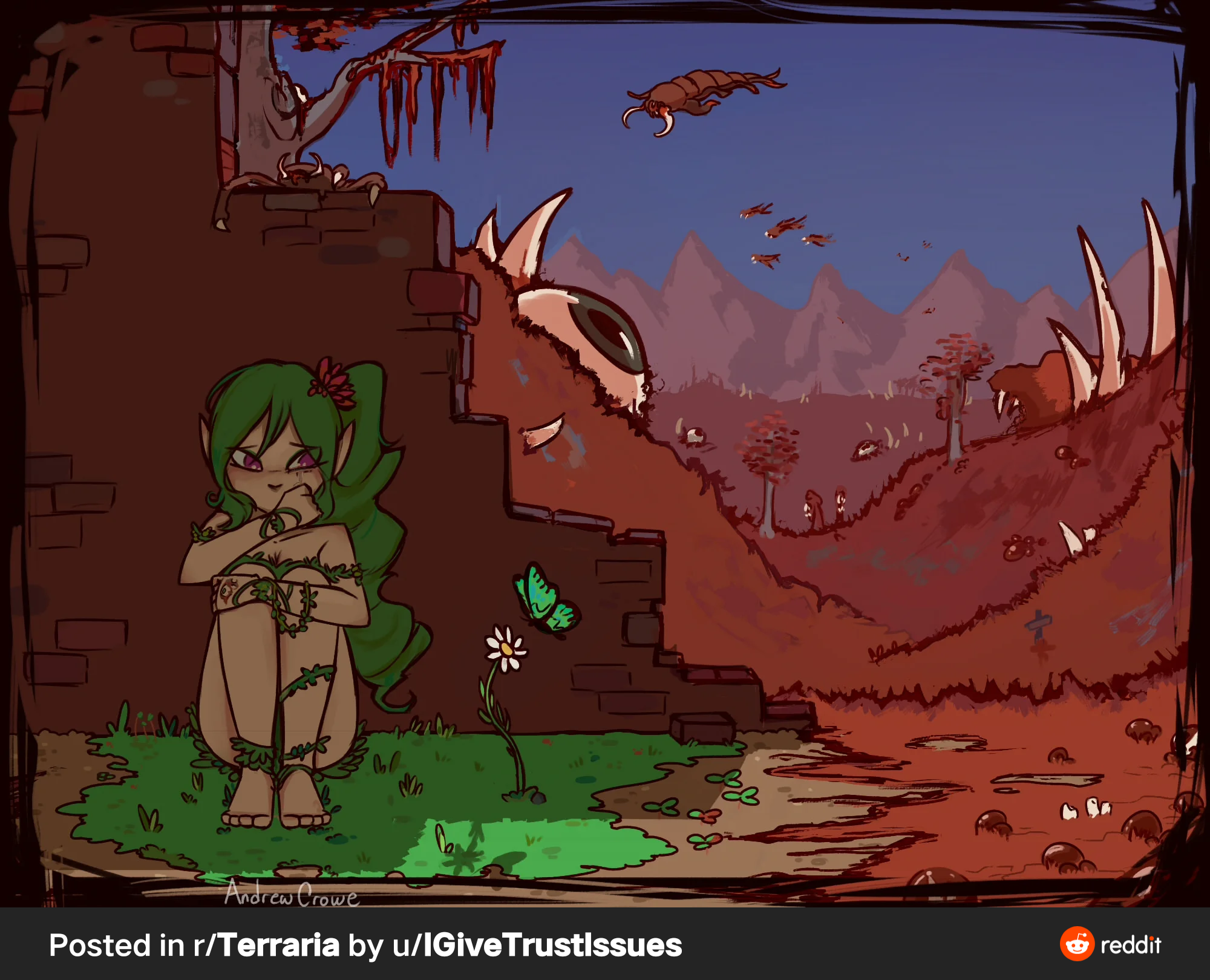 世界中总是会生成腐化之地或猩红之地。一个生成好的世界只会包含这两个生物群落其中之一,每种都有 1/2 (50%) 几率。腐化和猩红在困难模式之前期间只能通过草和多刺灌木在地表缓慢传播,地下很安全。