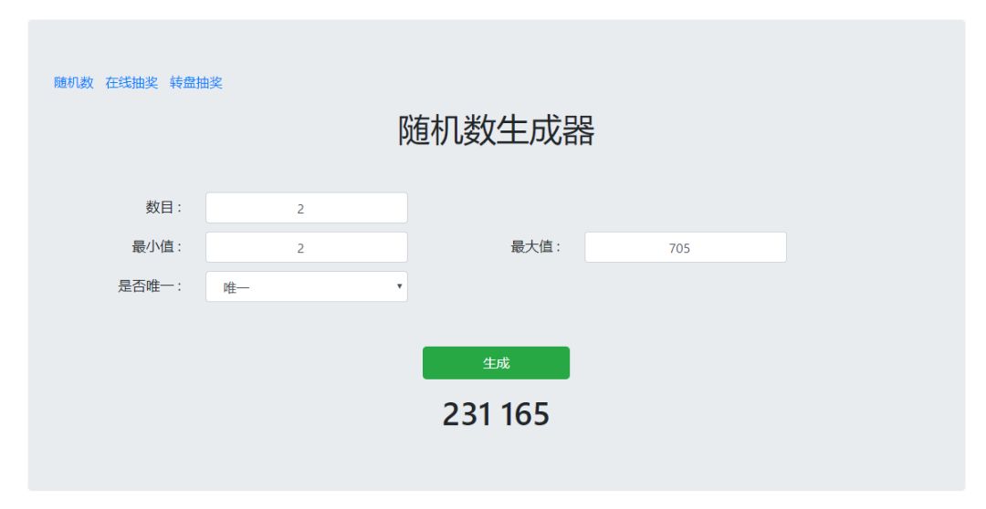 开奖使用的是在线随机数生成器