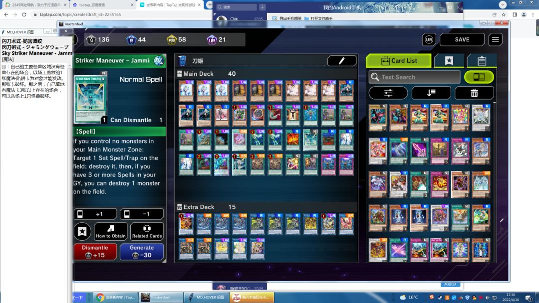 之前发过一篇闪刀入门,写完之后就被人拉去玩实体卡。打了挺久的,一直被暴打(全都是爆展卡组。魔术师,耀变龙,能赢但是很难)偶尔玩MD,基本上在MD里面大多数都是赢的。
