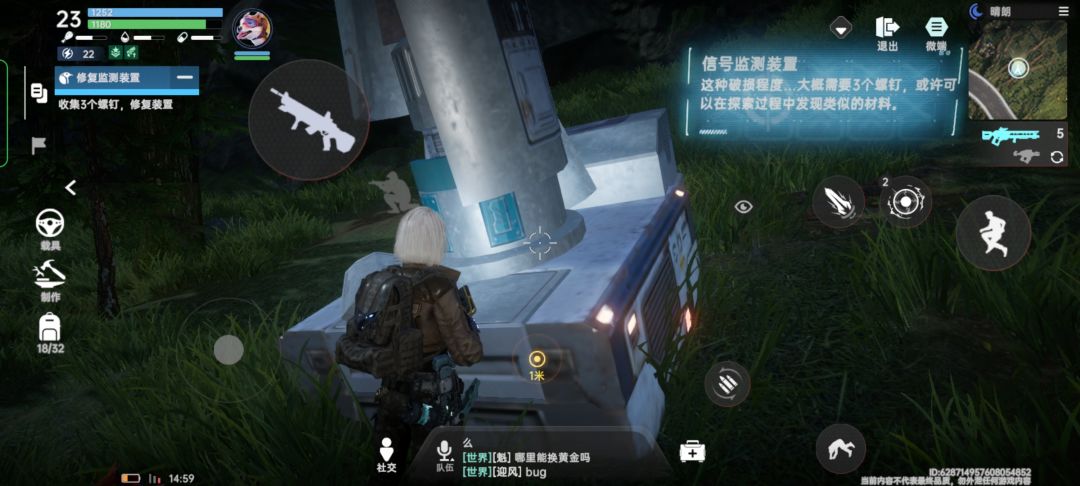 提示:需要3个螺钉,前提是你背包里有,没有的话;螺钉就在装置附近有,找一找防爆盾牌,但是需要退出观察模式。