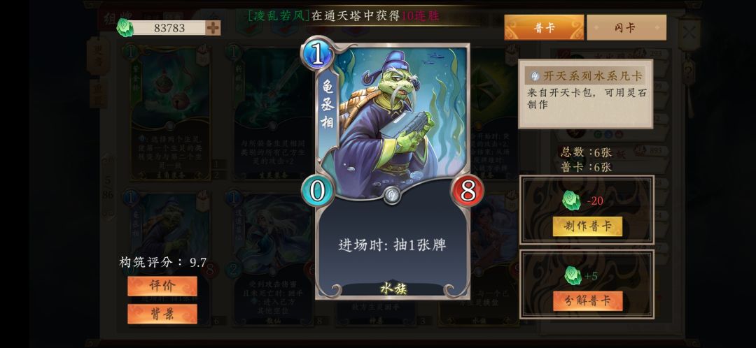 1.龟丞相,掺水系会放,优质的低费过牌,同时还能站场。由于青帝的异能,我方场上生灵越多,青帝的威力越大,故早早的站场生灵对青帝的帮助是非常大的。