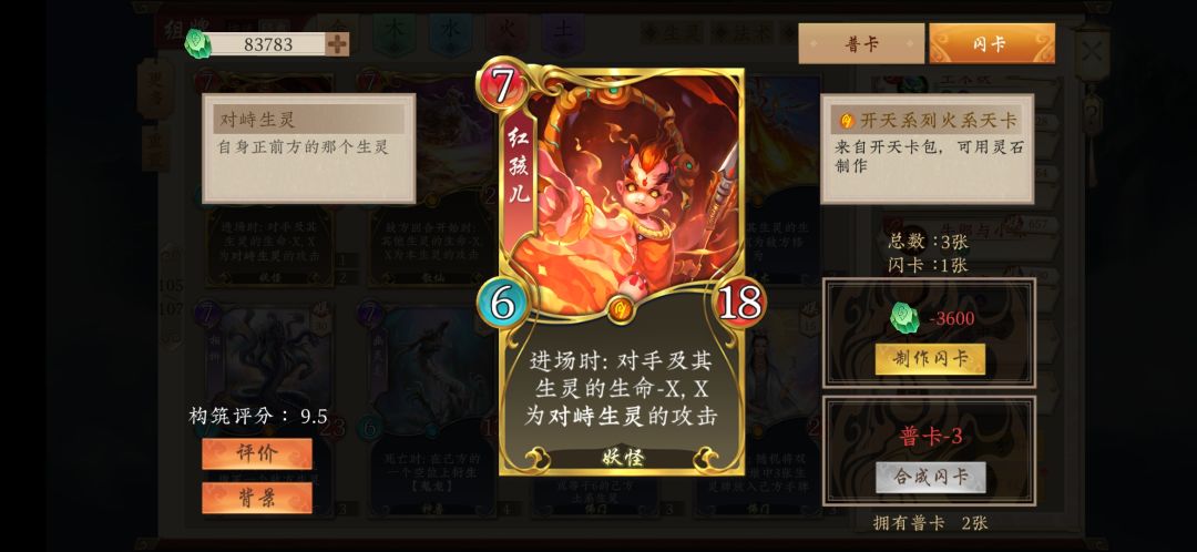 13.红孩儿,遇强则强的单卡,尤其站在对手青帝前,将对对手和其站场生灵造成高额的aoe伤害。