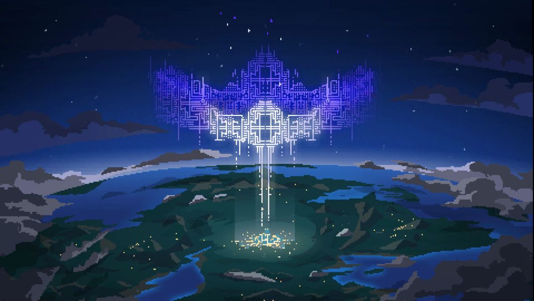 后来,旅者在篝火旁倒下。黑暗的能量随之消失。飘在天上的象征着核心能量图案消散在宇宙里。这里有一个小细节: