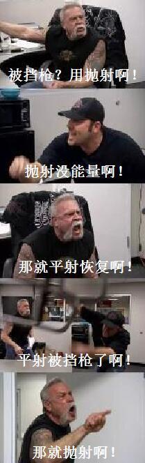 关于最近经常看到的抛射平射梗,就那什么你打不中人就抛射啊,可是抛射要能量啊,那就平射回能量啊,居然还有人特意做个图来带节奏