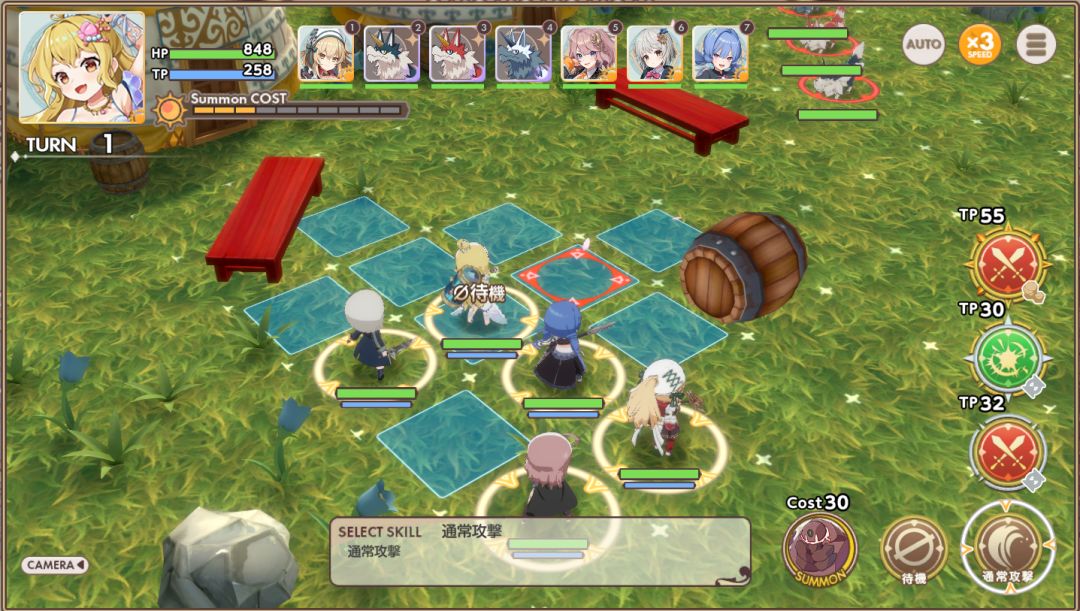 经典的回合制战棋玩法,可以养成的角色全部都是美少女,在借用战棋的基本盘,本身保有一定策略性的同时,融入了一个较为有趣的「魔物召唤」机制(我上面截图的右下角,有个写着Cost30的小图标,那个就是召唤)。
