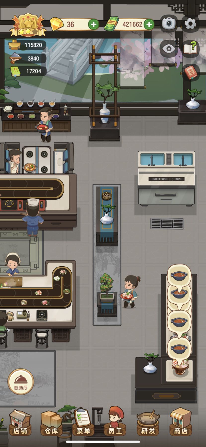 吐槽一下更新的,自助餐厅之前收益低更新完提高了,但是这端锅底的是不是太慢了???每次都是一大堆锅底在哪里,还要打扫的、洗碗的、太慢了!!!而且大家没发现更新完一楼和二楼的利润都变低了吗?!以前利润都最少在百分之六十以上、现在利润都不到百分之五十。。。