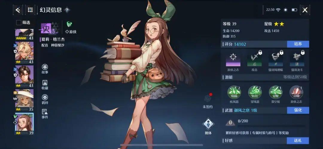 夏莉是风暴系游侠幻灵,其技能可造成风蚀效果,也可为自身增加会神BUFF。风蚀每3秒可使目标损失0.3%生命值,持续造成中量伤害。其觉醒技能【裂空斩】最为出色,可以使被觉醒技能击倒的目标受到的伤害提高22.5%,再配合影舞职业幻灵的特有潜能以及炎火▪融毁,打出爆发伤害,极速削弱敌人的血线。