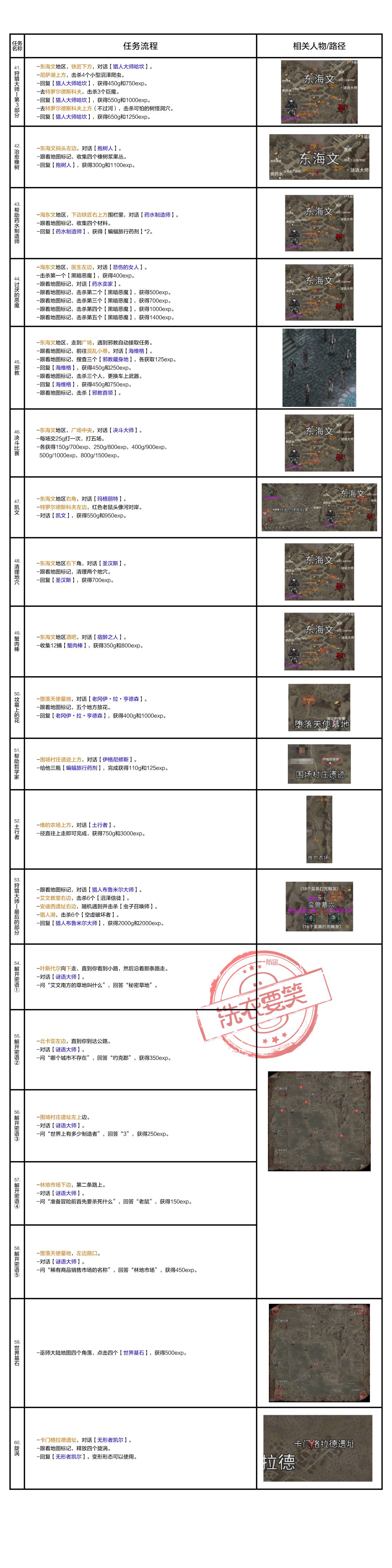 花了三天两夜,终于把第一个大陆的支线任务都整理好了
